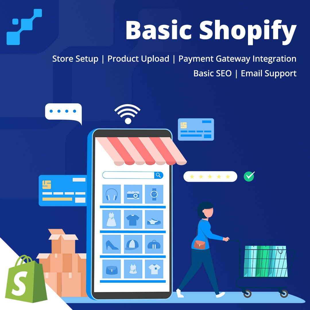 - Store Setup: Initial store setup, including logo placement, basic theme , and navigation setup.